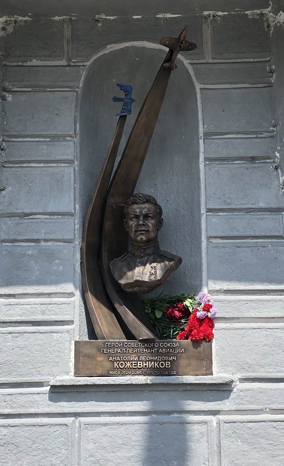 В столице торжественно открыли памятную доску выдающемуся военачальнику и герою Великой Отечественной войны Анатолию Леонидовичу Кожевникову. Мемориал разместился на стене здания у станции метро «Аэропорт» – места, неразрывно связанного с авиационной тематикой.